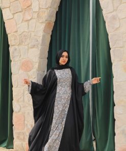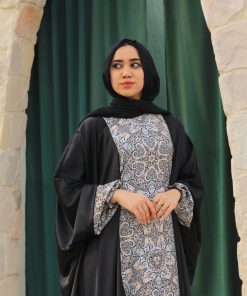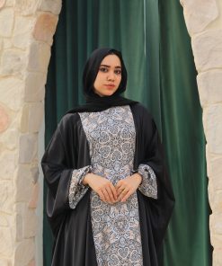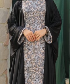اسدال ستان أرماني مطبوع ناعم وخفيف، مزود باستك على الأكمام وحزام داخلي لتظبيط المقاس، ومعاه طرحة منفصلة لإطلالة أنيقة ومريحة.