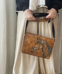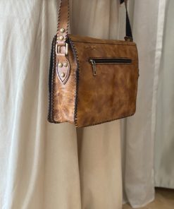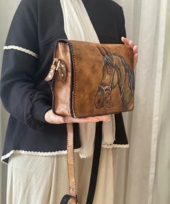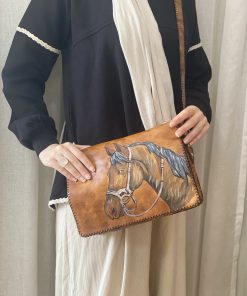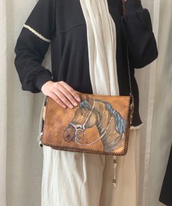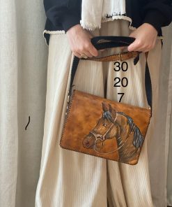 النقشة الحفر الهاند ميد على الغطاء الأمامي بتضيف لمسة شرقية أنيقة تخطف الأنظار، ولون الجلد الدافي والمميز بيخليها تليق على كل اللبس، سواء كاجوال أو كلاسيك.,