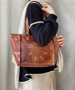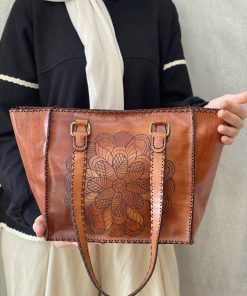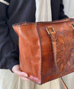 Durrah Bag – Handcrafted natural leather with engraved floral details. A timeless piece of elegance for every style. 💼✨